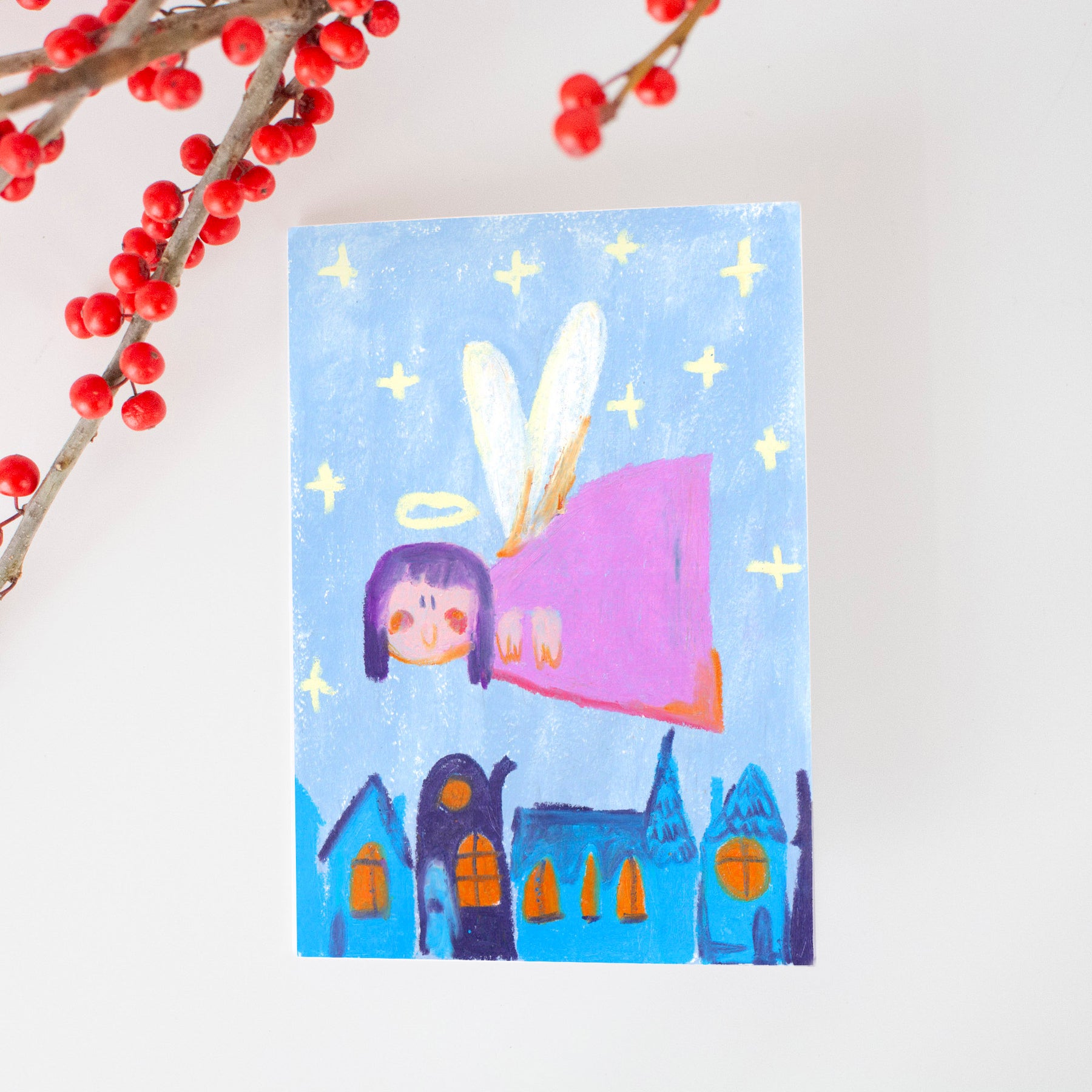 Weihnachtskarte "Christkind über der Stadt"