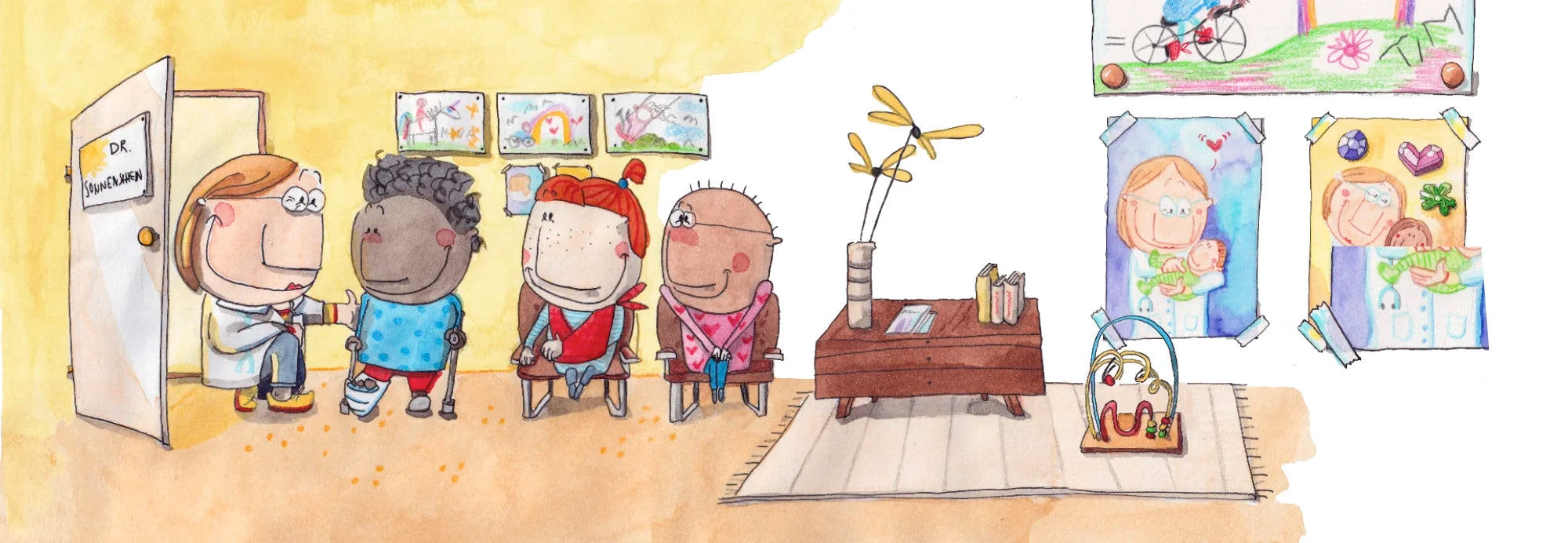 Für Unternehmen, Vereine und Selbstständige schreibe und illustriere ich Mini-Bücher zu Sozial- und Gesundheitsthemen.