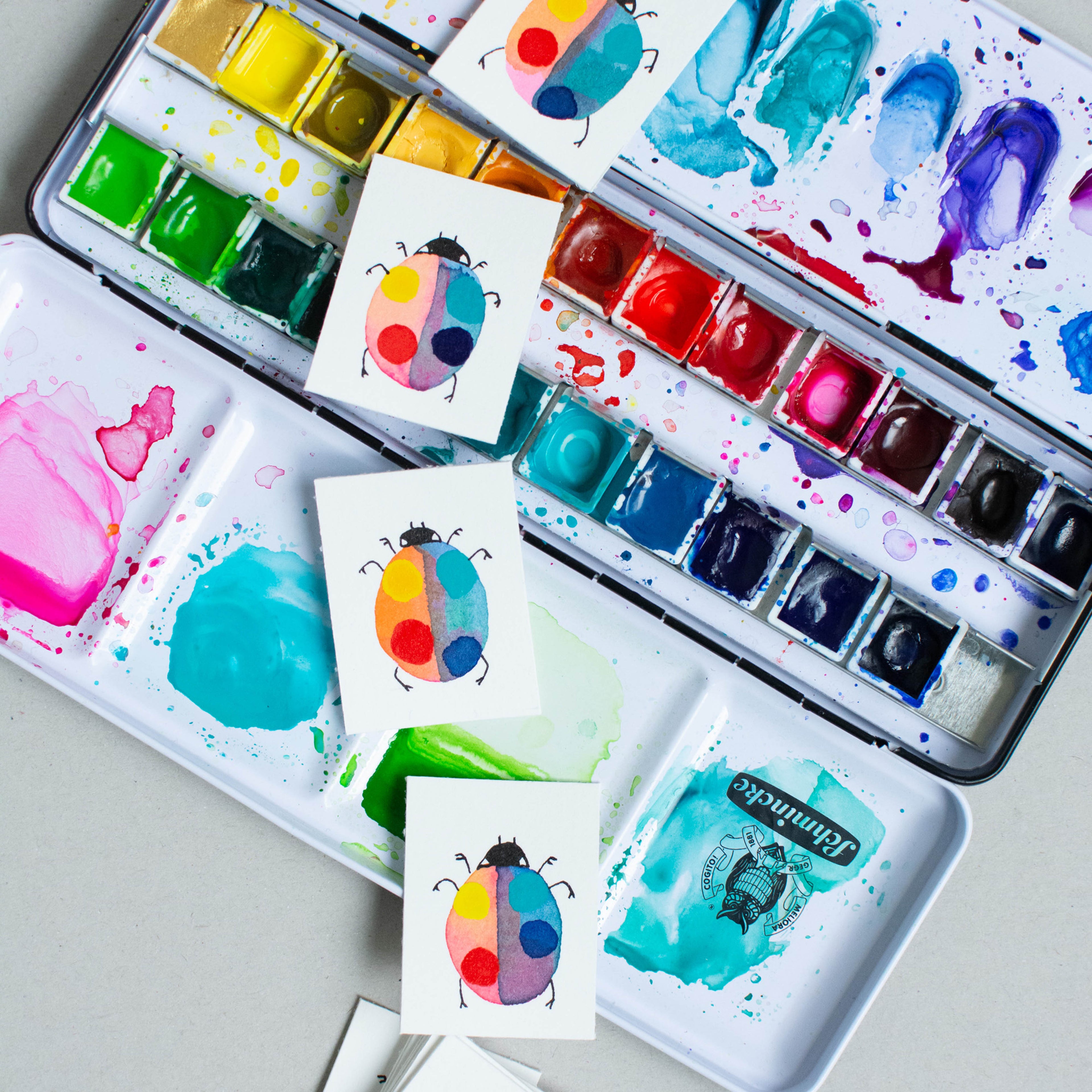 Aquarell: Lichtechte NEON-Aquarellfarben (Schmincke) auf 100 % Baumwollpapier, säurefrei mit ausgezeichneter Alterungsbeständigkeit